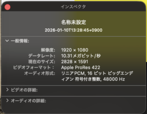 – ウインドウ/ムービーインスペクタ で解像度を確認