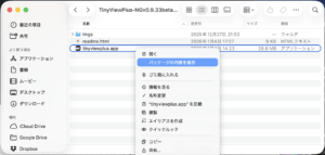 アプリケーションファイルで右クリックメニューで「パッケージの内容を表示」をクリックします。