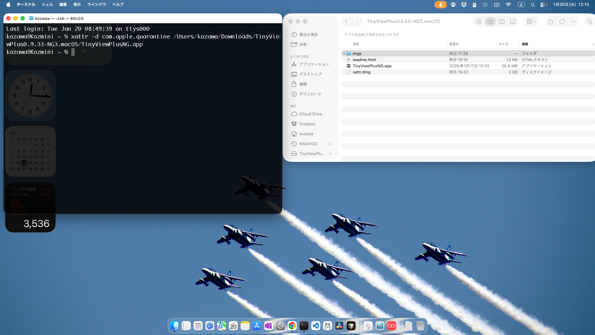 数年前から正式に署名の付いていないmacアプリをダウンロードして実行することに対して締め付けが強化されてきました。最初の頃は右クリックで開くを実行すれば大丈夫だったのですが今やターミナルを開いて以下のコマンドを投入するというのが常套手段になってしまいました。